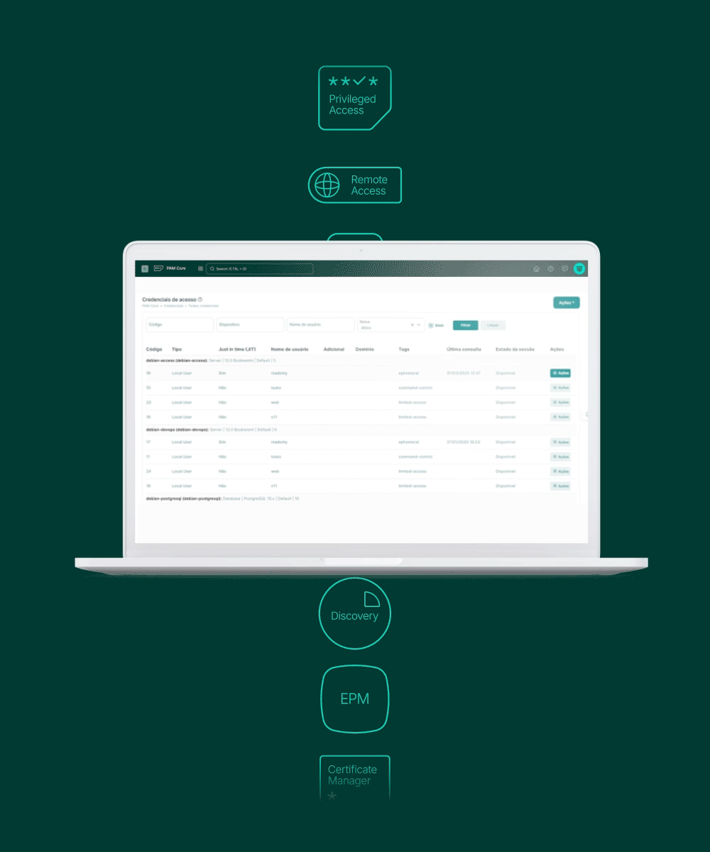 Zu den Kernfunktionen gehören Least-Privilege-Kontrolle, Just-in-Time-Zugriffe, sichere Credential-Verwaltung, Session Monitoring, Audit-Logs und automatisierte Workflows. Segura PAM unterstützt Cloud-, Hybrid- und On-Prem-Infrastrukturen und ist damit für moderne IT-Security-Architekturen geeignet.
